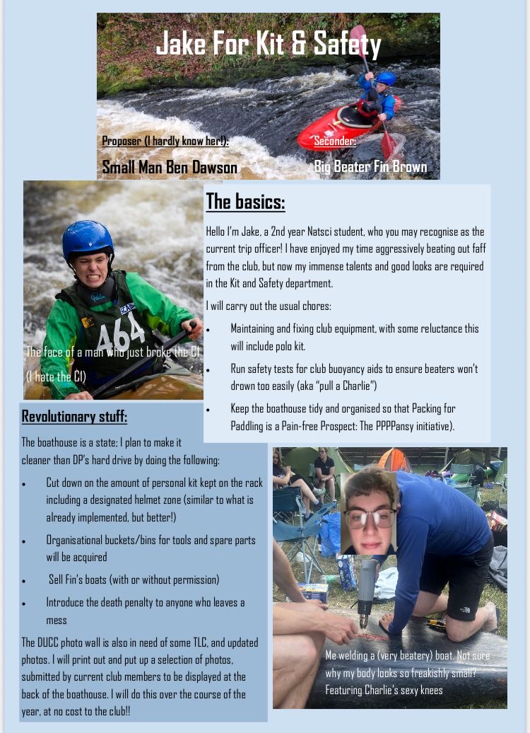 | Jake Selway- Kit and Safety Officer Manifesto |