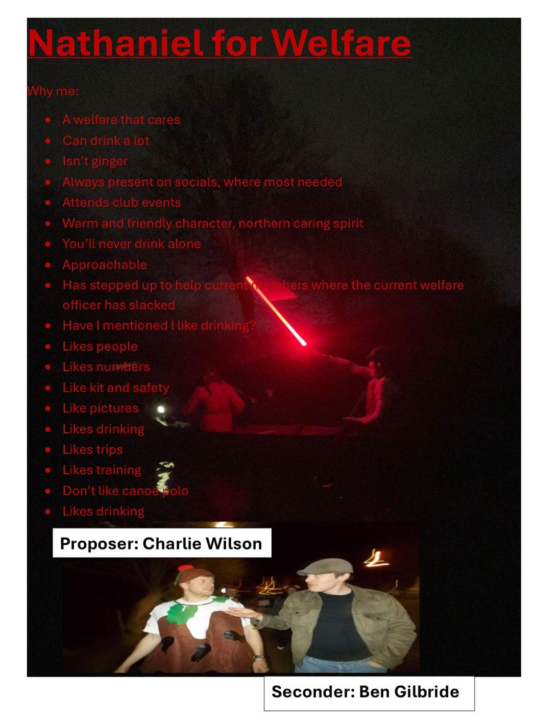 | Nathaniel Thackeray- Welfare Officer Manifesto |